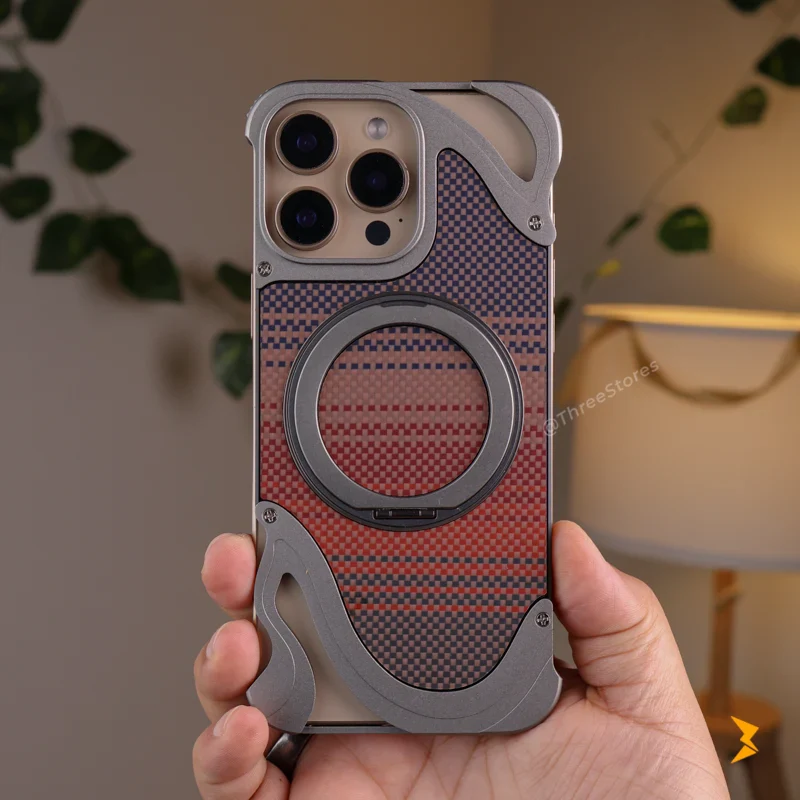 Get the premium Prime Metal Case for iPhone 16 Pro Max with MagSafe compatibility for complete protection, a sleek metal design, and a built-in stand that gives your phone a stylish appearance and superior durability.